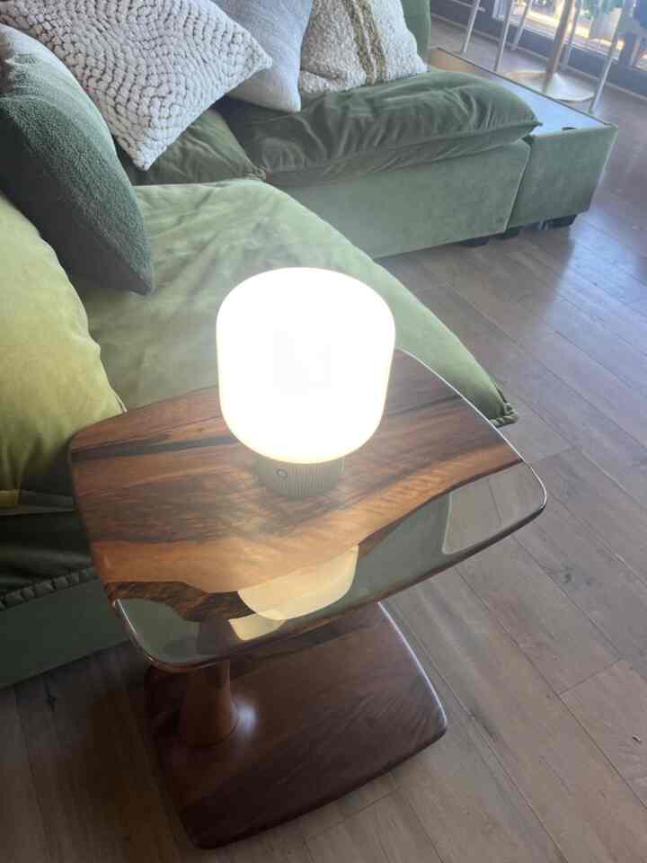 Setting the mood with warm orange lights and a cozy table lamp. The perfect ambiance for a relaxed evening! 🍊🕯️✨ #MoodyVibes #CozyCorner #HomeDecor #VelvetSofa #MidCenturyModern #AccentLamp