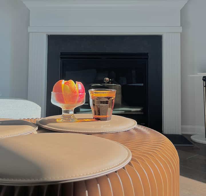 Cool tones and warm wood in effortless balance.