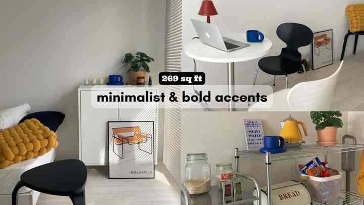 Inside a minimal 269 sq ft studio with daring accent colors