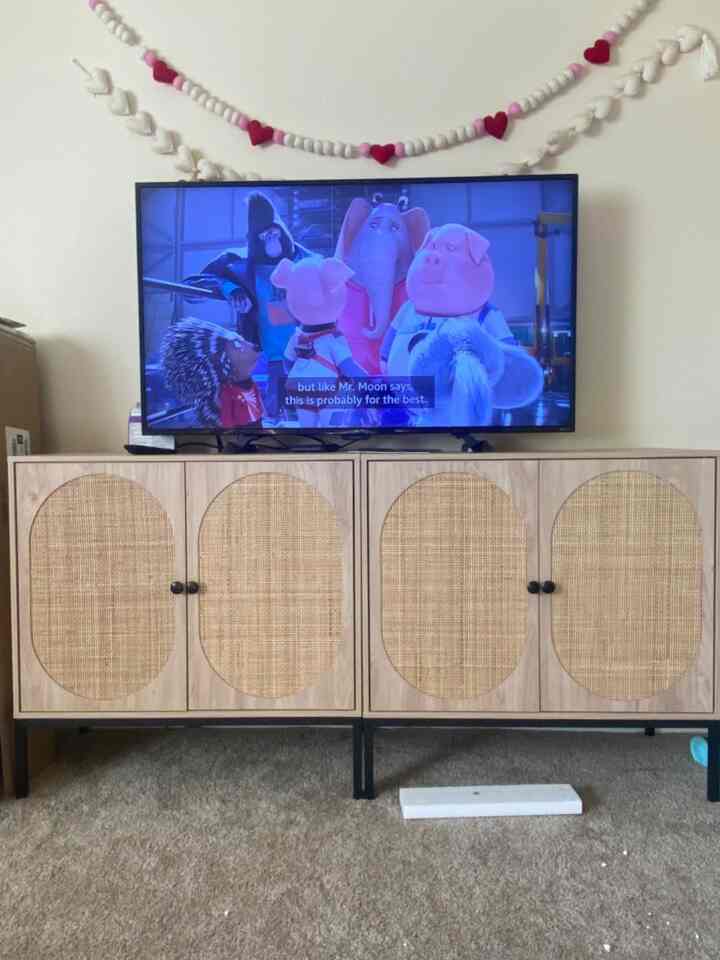 I had this in my cart for awhile, was hesitant due to some of the reviews, and there were very little reviews for the oval, which is what I purchased. I decided to take a chance and buy them. Some of the reviews did mention the instructions not being very clear, which I felt I only “struggled” with 2 of the steps. I chose to build one at a time, start to finish to work out any kinks if needed, took about an hour to put together the first. Granted I took my time, I would also recommend organizing all of your pieces on the floor and read the instructions start to finish prior to putting it together. The second one I put together in 30 minutes or less.A handful of the reviews show and have complaints of the doorknobs not lining up. I did not have that issue whatsoever.Advice if you purchase this: step 2 should have added to insert 6 letter A’s PRIOR to step 3. Step 3 doesn’t specify which 6 holes to place the letter A’s (there’s a total of 8, same sized holes). I will post a picture and circle the holes in blue that they need to be inserted in, as that was 1 mistake I made but was quickly caught.Step 9: attaching the magnetic pieces to the inside of the doors-do this at step 7, just trust me. Way easier, no risk of feeling like you’re going to snap the door off while holding the door, applying pressure and screwing the piece in.Aside from those 2 very very minimal issues within the instructions, I am really happy with this purchase. The magnets are strong, holds the door shut. I do have a toddler and they’re able to open the doors, they do have to work for it a little bit to get them open! Very easy for an adult to do. The shelves do hold weight pretty well, my child chose to test that out, shelf holds 30oz lbs without breaking. They are heavier than I expected, which is what I wanted. They are much better quality than IKEA furniture, more solid and sturdy.TV on the stand is 55” for reference.I was also worried there was nothing behind the rattan pieces, but it’s actually very sturdy and backed by wood.I chose to not put the backing on for now, due to us using it under the tv, want to be able to access the plugs and have them pushed up flush to the wall.Just buy it already!