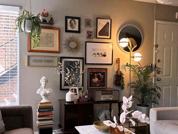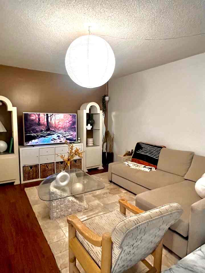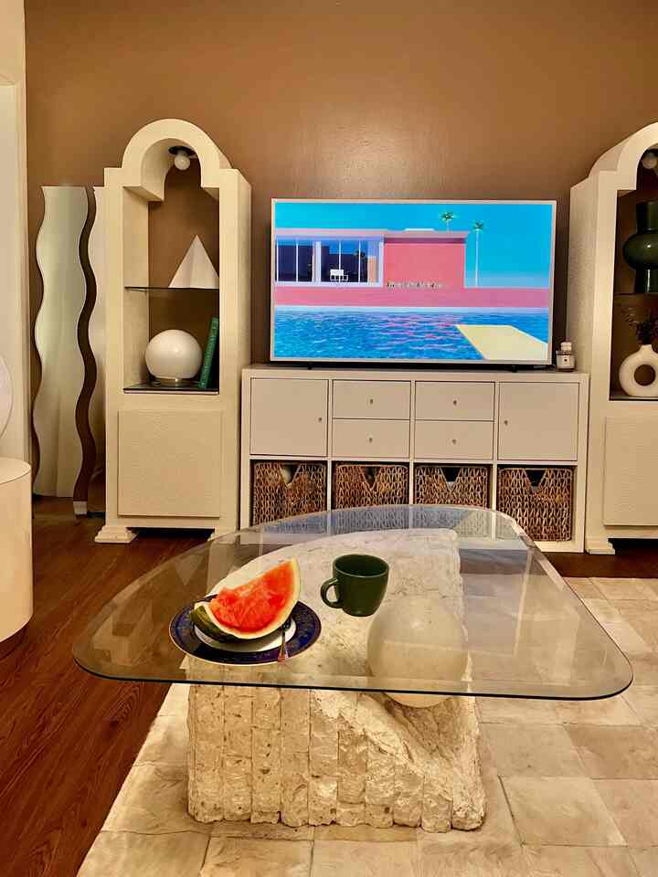 <span data-sheets-root="1" style="color: rgb(0, 0, 0); letter-spacing: normal; font-size: 10pt; font-family: Arial;">This is our little corner! It’s behind the couch, next to our breakfast bar, and it’s just big enough to fit a small sitting area like this!Verner Panton is one of my favorite designers of all time, so of course I had to get the Panton chairs first! I was actually surprised how comfortable they are. I thought I’d need to give up comfort for the sake of beauty, but it turns out beauty can come with the comfort as well! I also love the Louis Poulsen Panthella lamp, and I believe it’s also designed by Verner Panton. Unlike other black items, the lamp has a glossy finish, which I really love with the matte table by HAY.</span>