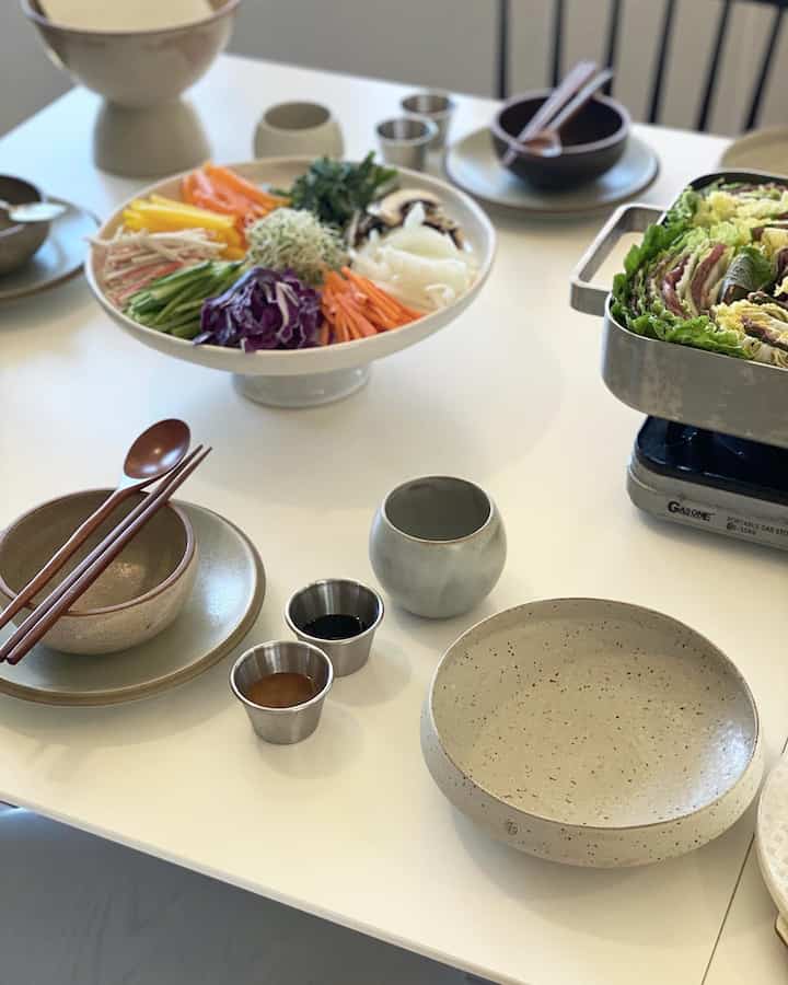 I'm putting the Christmas dinnerware back into storage to create more space for a new white plate in the drawer. I'm also glad I found a pearl collection from Costa Nova at a 70 percent discount today. The table setting for the spring, white ceramic, always enhances the food presentation and gives it a clean look. 🤍