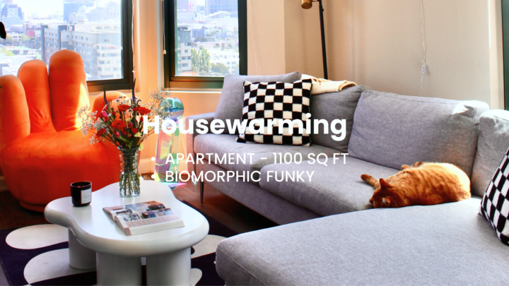 Inside a funky and colorful 1100 sq ft apartment with a view