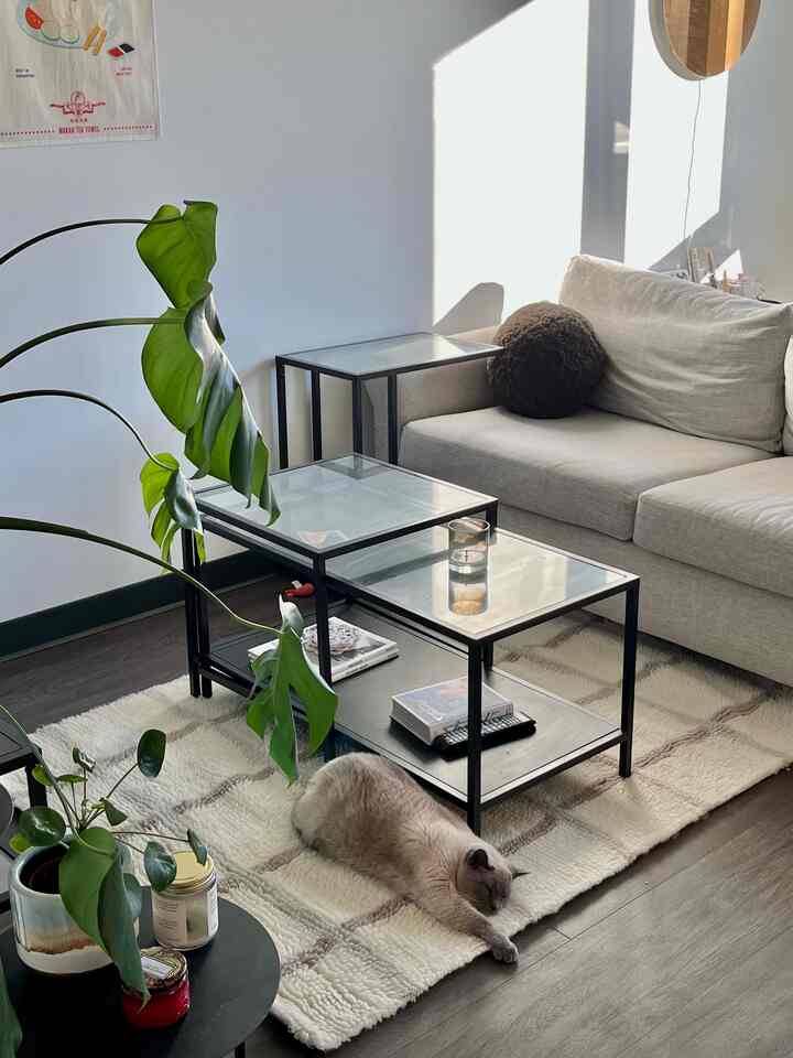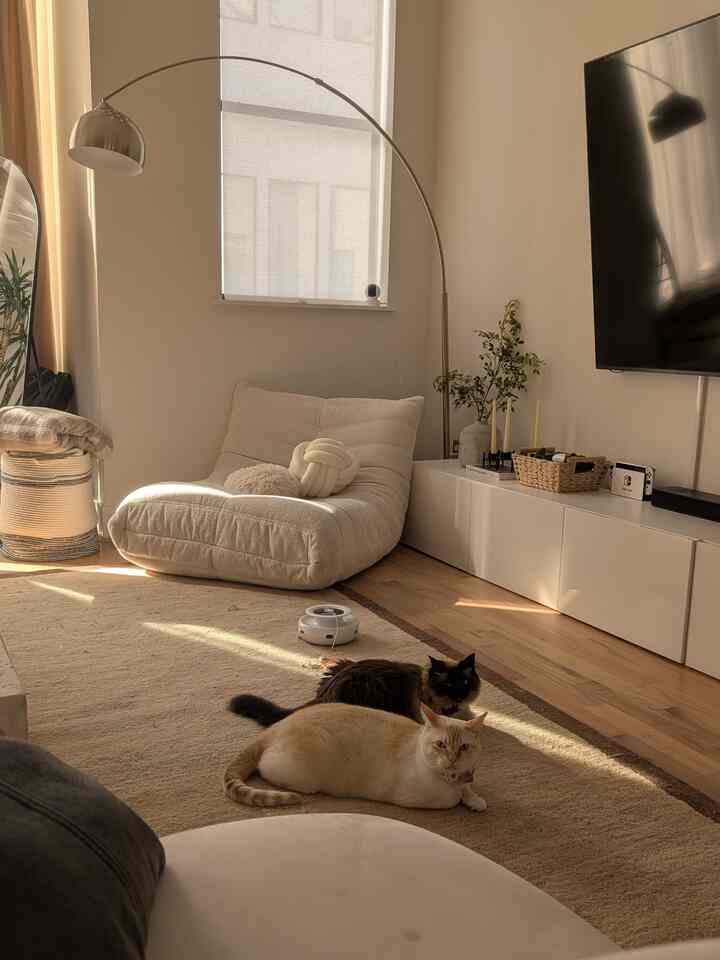 sunny afternoons in a cozy living room☀️ #livingroominterior #apartment #cat #minimal #minimalinterior #cozy
