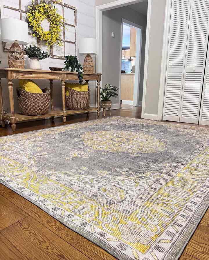 Foyer decorated for Spring with pops of yellow