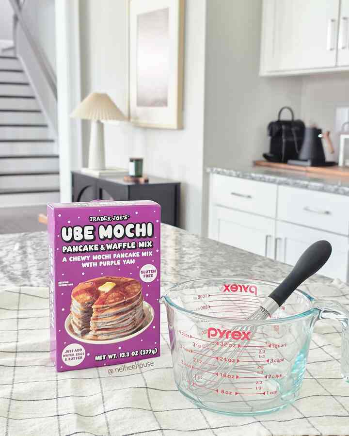 Have you tried Trader Joe's seasonal Ube Mochi Pancake mix? It is a must for pancake lovers 😘 #Pancake #traderjoefinds #kitchen #kitchenitem #recipe #homebrunch