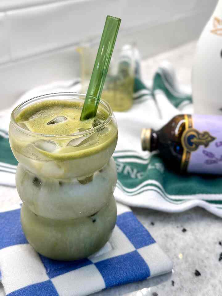 My current obsession: almond milk + foamy matcha + a touch of lavender syrup 💚💜 #homecafe #recipe #matchalatte #matchalover #cozyvibes #calmdrinks #drinkrecipes #stillinsummer
