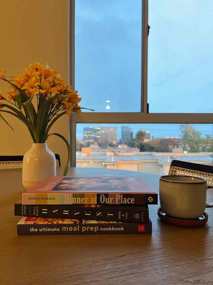 Enjoying a beautiful sunset while deciding what to make for dinner 🍽️ Here are a few of my favorite cookbooks #cooking #cookbook #recipe #sunset #ikeakitchen