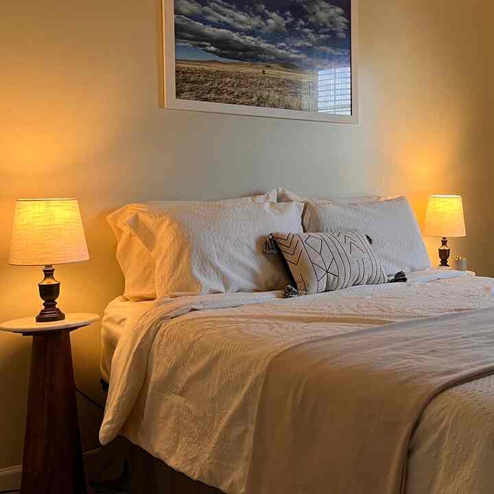 I still can’t believe how beautifully they complete the space. The minimal curve of the backrest, the mix of warm wood and cool metal, and how effortlessly they tie into the overall palette — it’s the kind of piece that quietly upgrades the whole room.