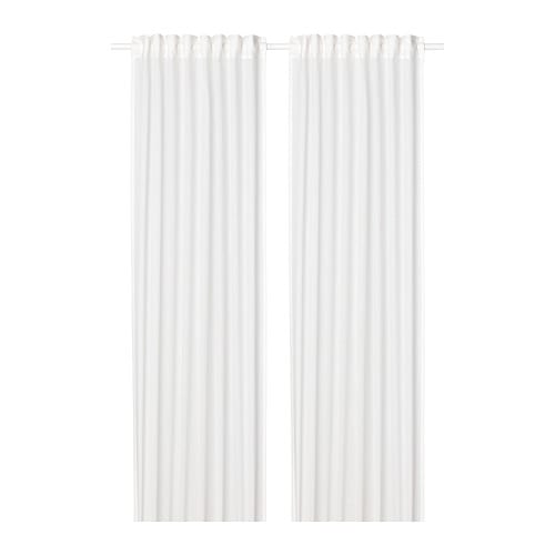 Crafted from 100% cotton, these sheer white curtains feature a subtle linen-style texture, allowing natural daylight in while reducing glare and providing privacy. The fabric is soft, durable, and machine washable for easy care. The curtains come with heading tape, so they can be hung directly on a rod with a rod pocket or tabs, or attached to a track rail using gliders or hooks for a more tailored look. The heading tape matches the curtain color for a tidy appearance, and each package includes one pair of curtains. Shortening can be done quickly with an iron-on hemming strip, and pleats can be formed using curtain hooks.