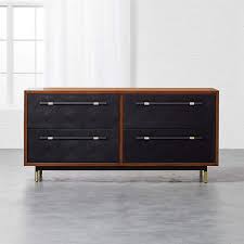 Oberlin Tall 4-Drawer Black Leather and Wood Dresser