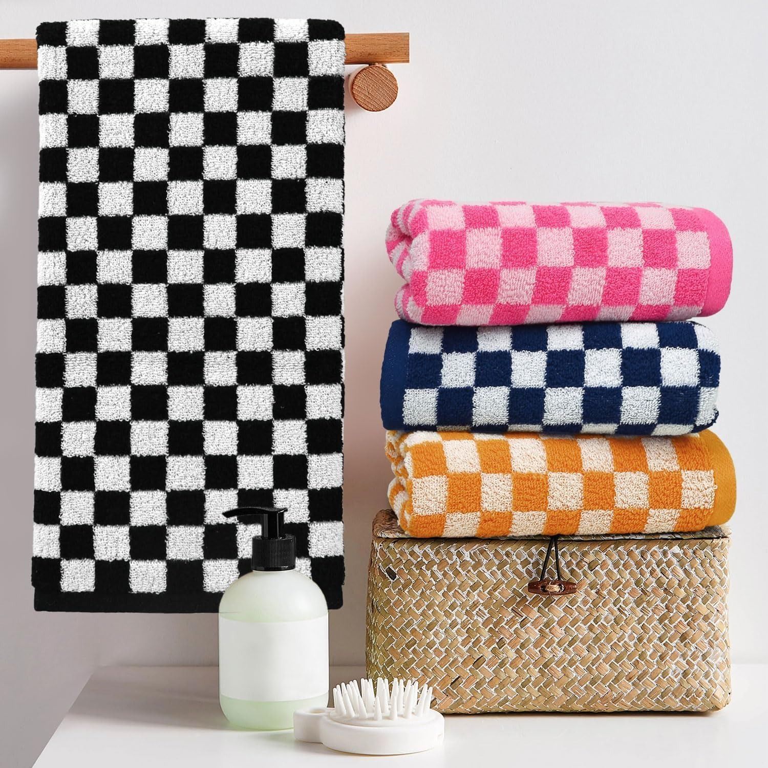 Checkerboard & Stripe Hotel Bath Towel Set (10-Pack)