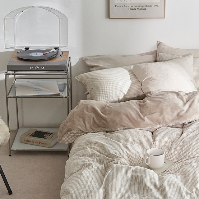 따뜻한 카푸치노 베이지체크 극세사 이불 SS/Q
