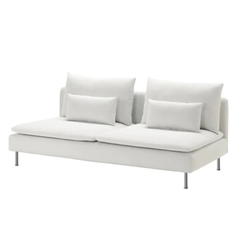 Crafted with a cotton and polyester Viarp fabric cover featuring a textured, mélange finish, this sofa combines deep, generous seating and loose back cushions for added comfort and support. Its light, airy look is complemented by high legs and slim lines, while elastic webbing and resilient foam provide lasting comfort. The modular design allows for flexible arrangement, and the removable, machine-washable cover is both durable against abrasion and resists fading, making maintenance simple.