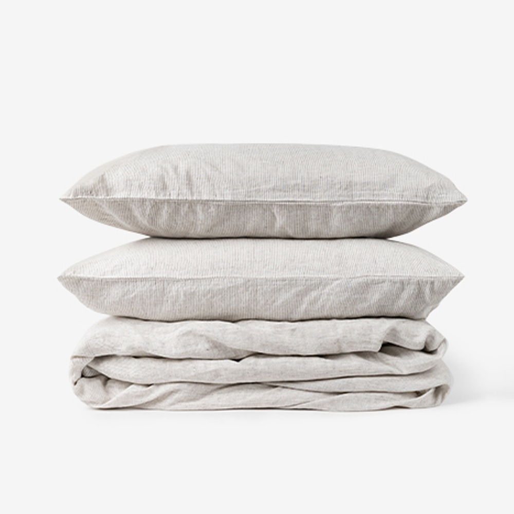 리넨 베딩 세트 - 핀 스트라이프 그레이 (3 sizes)