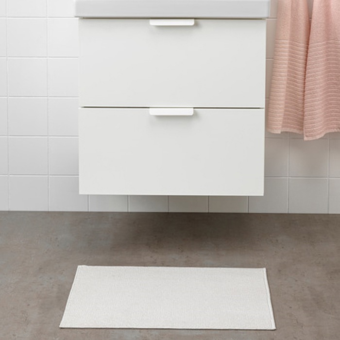 Crafted from 100% polyester, of which 90% is recycled, this bath mat has a weight of 1050 g/m². It dries quickly and coordinates well with a variety of towels and shower curtains for a cohesive appearance. The mat is machine washable for easy maintenance and includes a latex backing to help it stay securely in place.