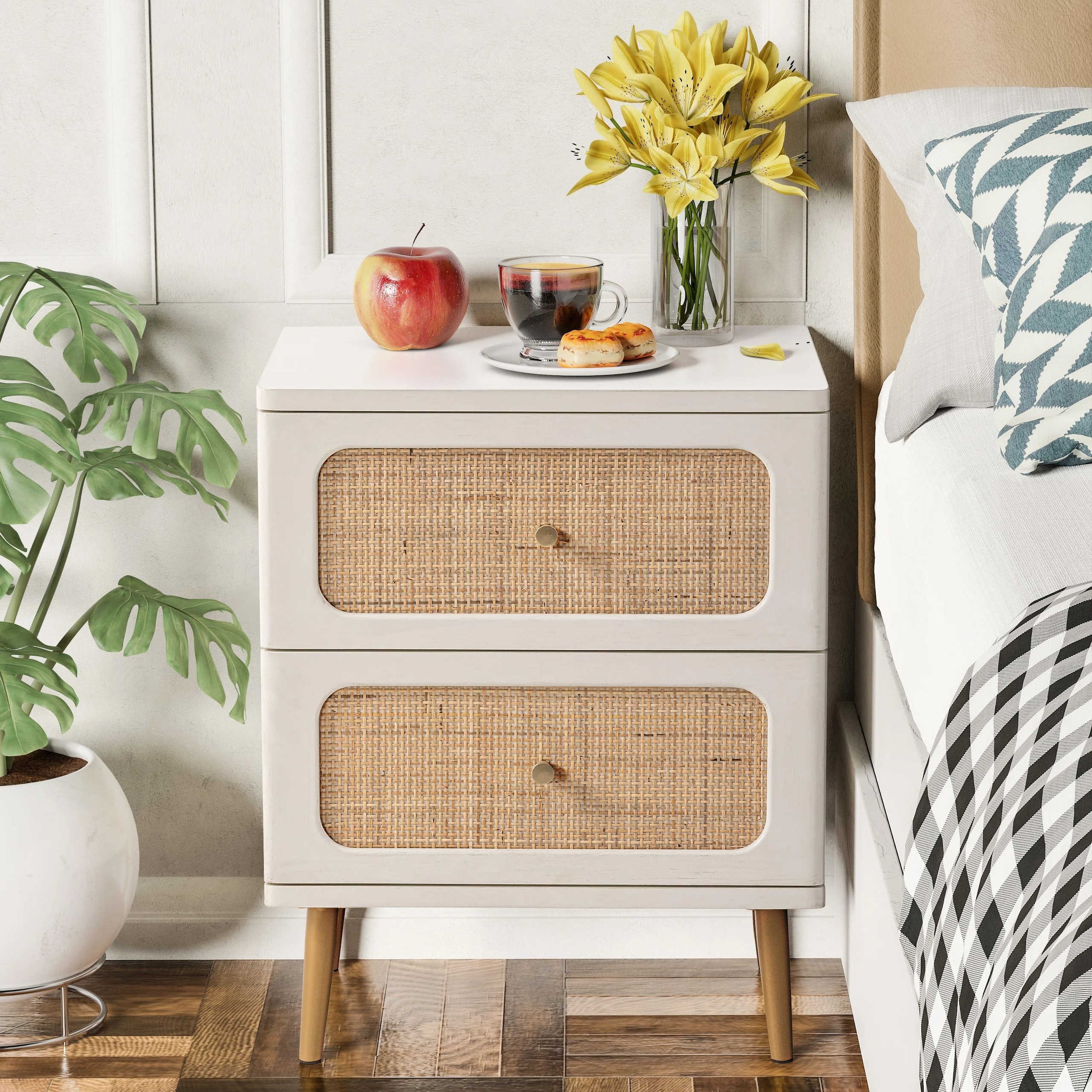 Japandi Natural Rattan Nightstand