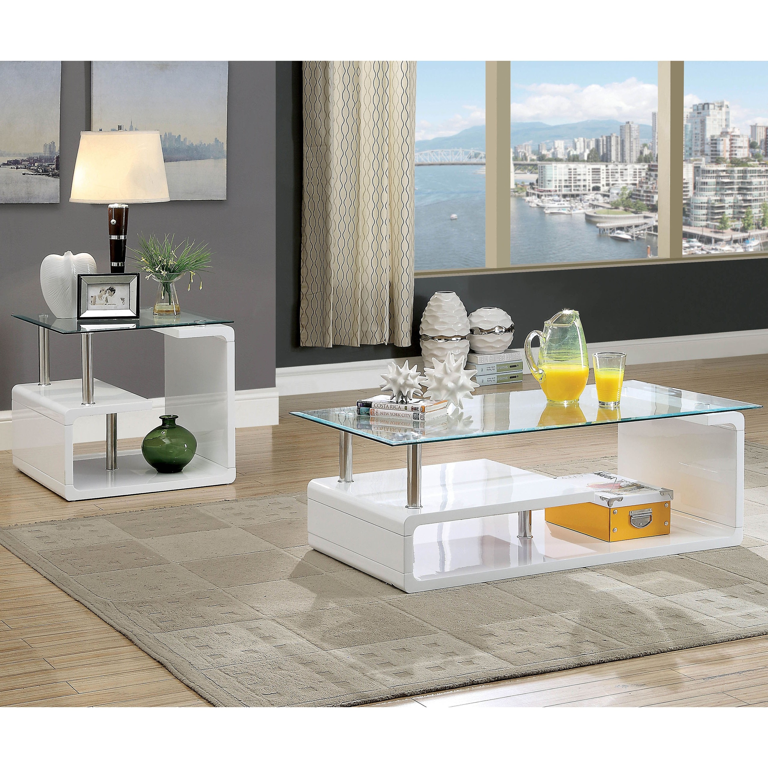 Furniture of America Modern Glass White and Clear Coffee Table