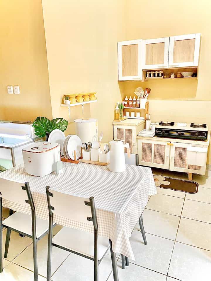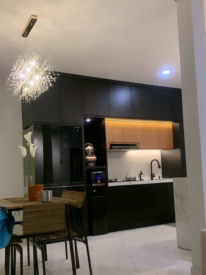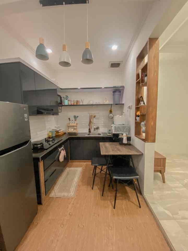 Design dapur ini juga udah dikonsep seperti ini biar terlihat luas, jadi suatu saat nanti jika sudah memiliki anak mungkin tinggal menambah beberapa perabot perlengkapan anak 😍