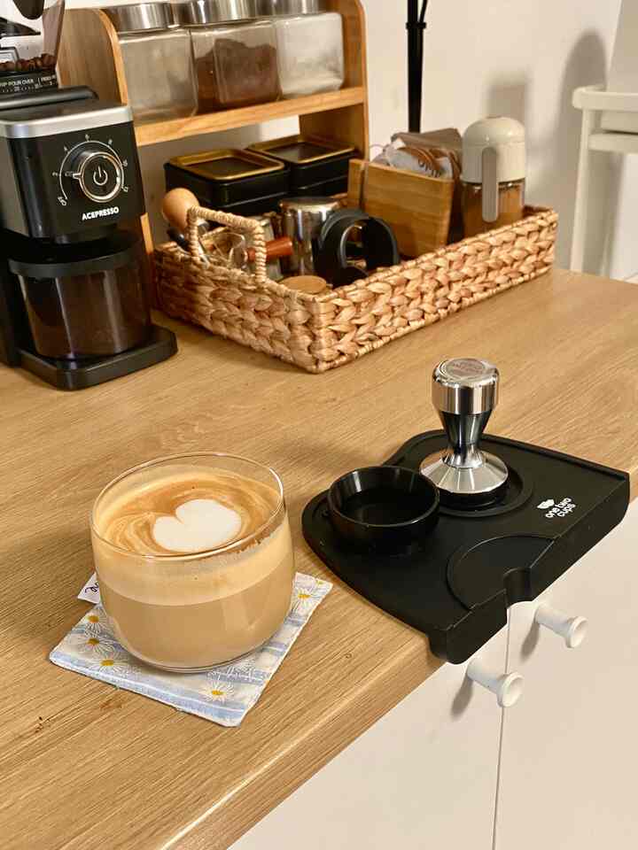 Satu-satunya rak terbuka justru kami manfaatkan untuk hal yang paling sering dicari: toples snack & sereal, plus gelas kopi favorit. ☕
