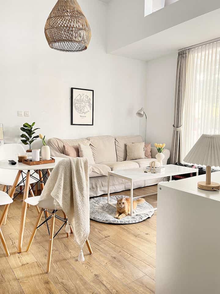 banyak perubahan di rumah kami ini, termasuk membangun sisa lahan kosong di area belakang yang kami jadikan gudang, kitchen-dining dan membuat connecting door, kami pun mendekor beberapa ruangan agar sesuai dengan style rumah kami yaitu Scandi-Boho