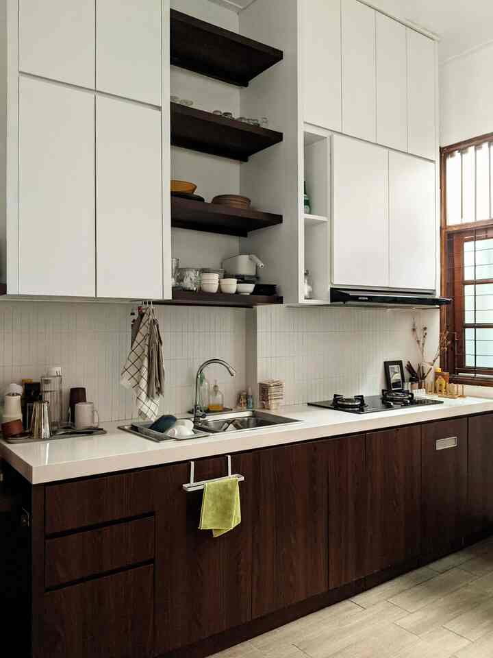 Selain dapur jadi lebih rapih karena banyak barang bisa disimpan di dalam kabinet, barang-barang di dapur jadi punya rumahnya masing-masing, sehingga mempermudah saat mencari barang dan saat bersih-bersih dapur
