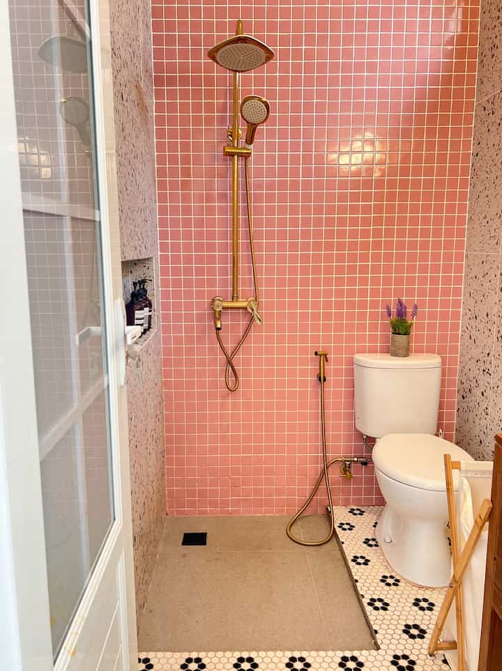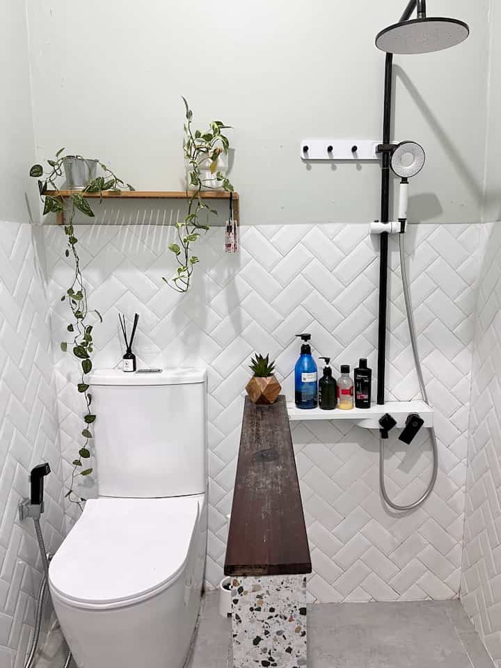 Semoga bermanfaat yaa untuk inspirasi mendesain kamar mandi yg masih bawaan developer agar tetap aesthetic 😊🫶🛀🚿🪴