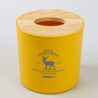 Kotak Tisu Kayu - Tabung Kuning