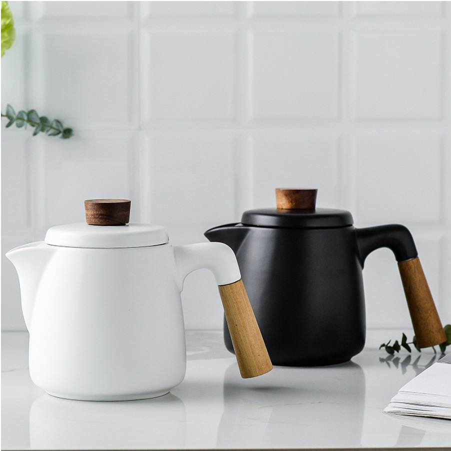 Tea Pot Unik Teko Pitcher Kaca Teh Kopi Tahan Panas Tutup Kayu Estetik - 1000ml