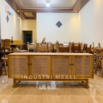 BUFFET KAYU JATI SOLID MIX ANYAMAN ROTAN