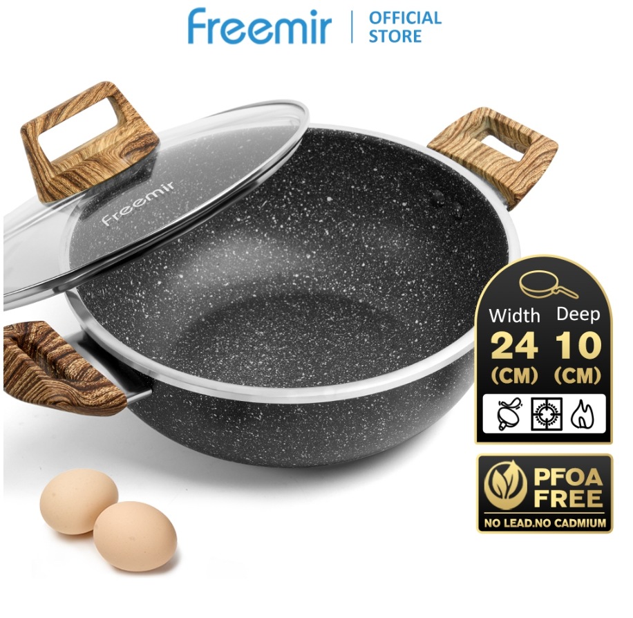 Wok Pan White Granite Series Dengan Tutup
