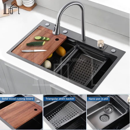 Stainless Steel Kitchen sink Modern Kitchen Sink Luxury Black 1 Bowl 304