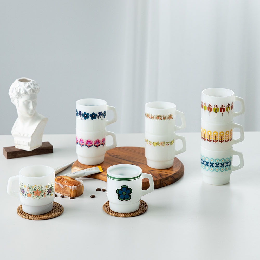 홈카페 유리 레트로 디자인 반투명 밀크글라스 머그컵 220ml