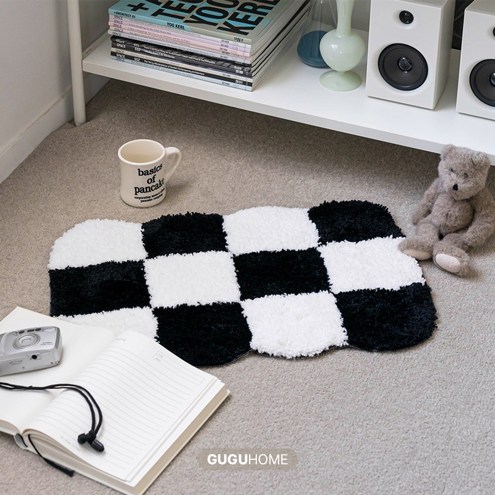 체크 미드센츄리러그 미니 사각형 단모 체커보드 퀼팅매트