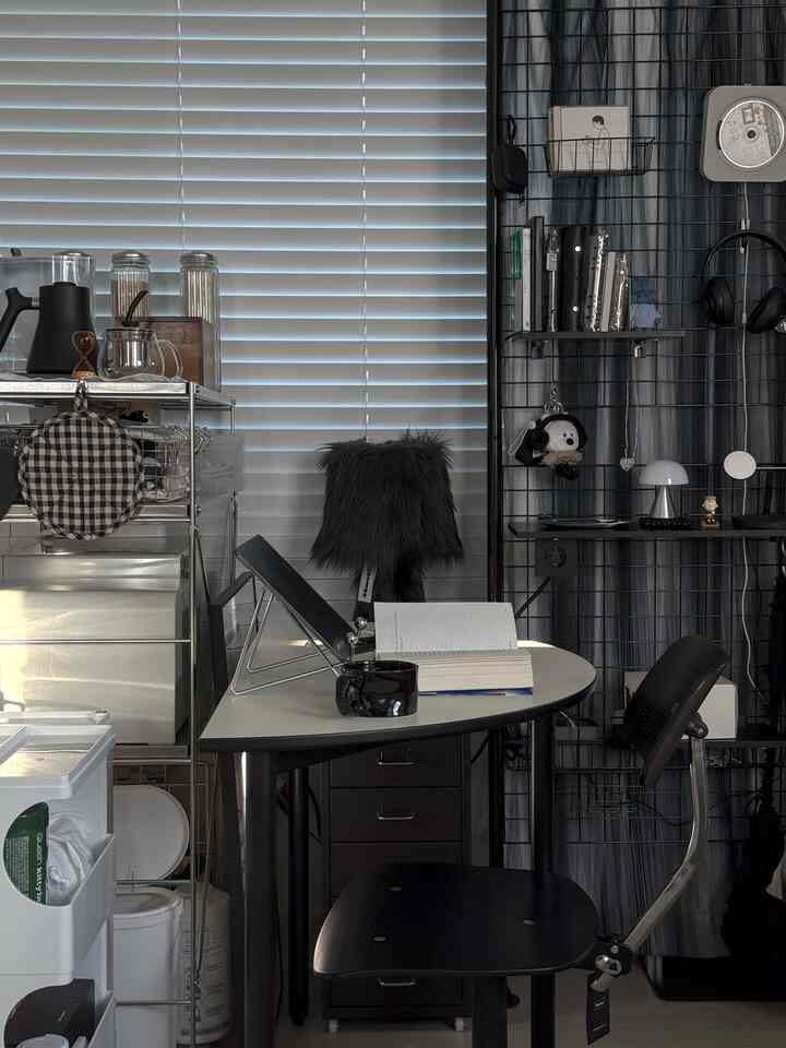 幅がスリムな棚をずっと探していて、ようやく見つけたのがこのパーテーション。手帳や充電器、CDプレーヤーなど、私の趣味時間を支えてくれる万能アイテムです。場所を取らず、奥行きはたった200mm。コンパクトながら実用性もばっちりで、本当に頼れる存在です。