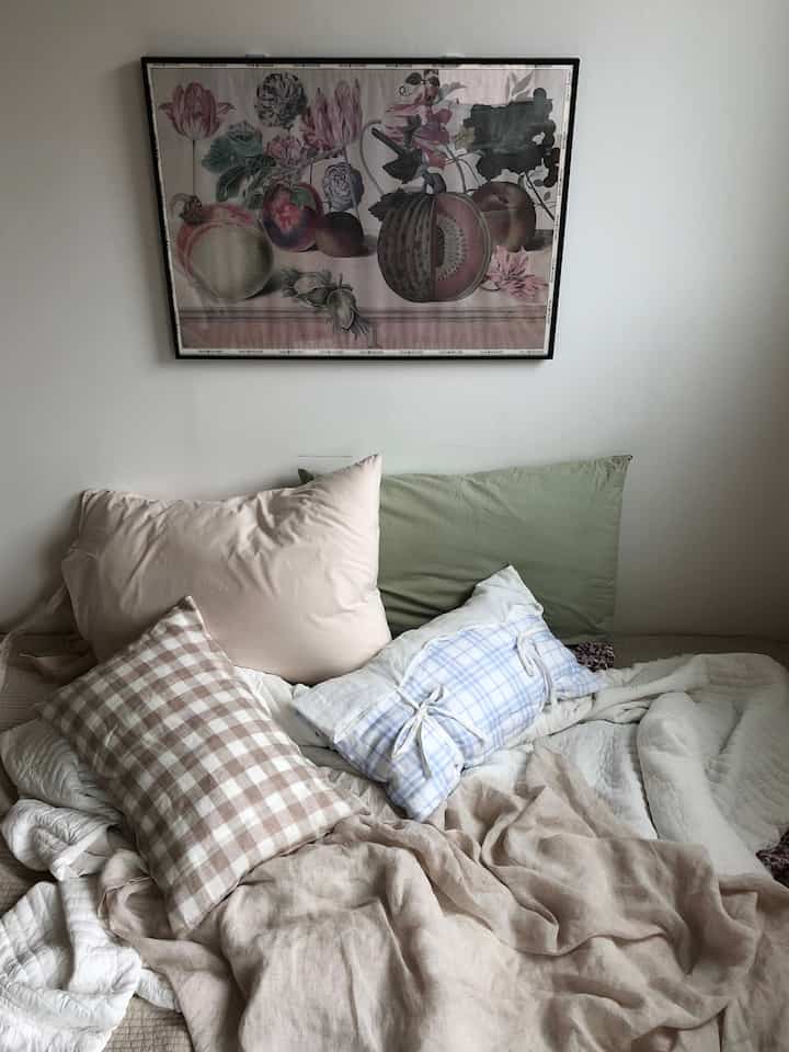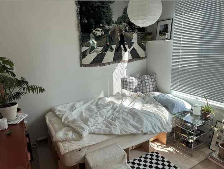 部屋いっぱいにベッドとクッションを広げて、ふわっと包まれるように暮らしてみたい——そんな憧れがずっとあります。でも今の部屋はコンパクトで、生活もする場所。空間すべてをベッドにできないことが、どこか心残りでした。そこで見つけたのが、海外動画で見たソファベッド。今あるベッドを手放す決断をして、思い切ってお迎えしました!普段はソファとして使い、寝る前に背もたれクッションを外せばシングルベッドに早変わりします🛏️