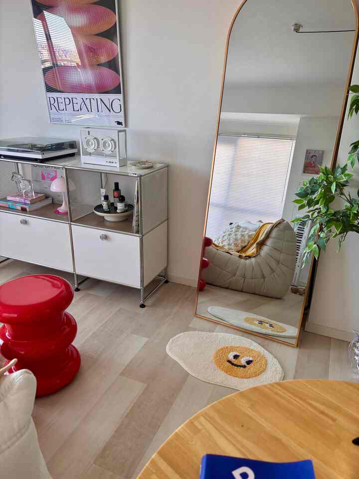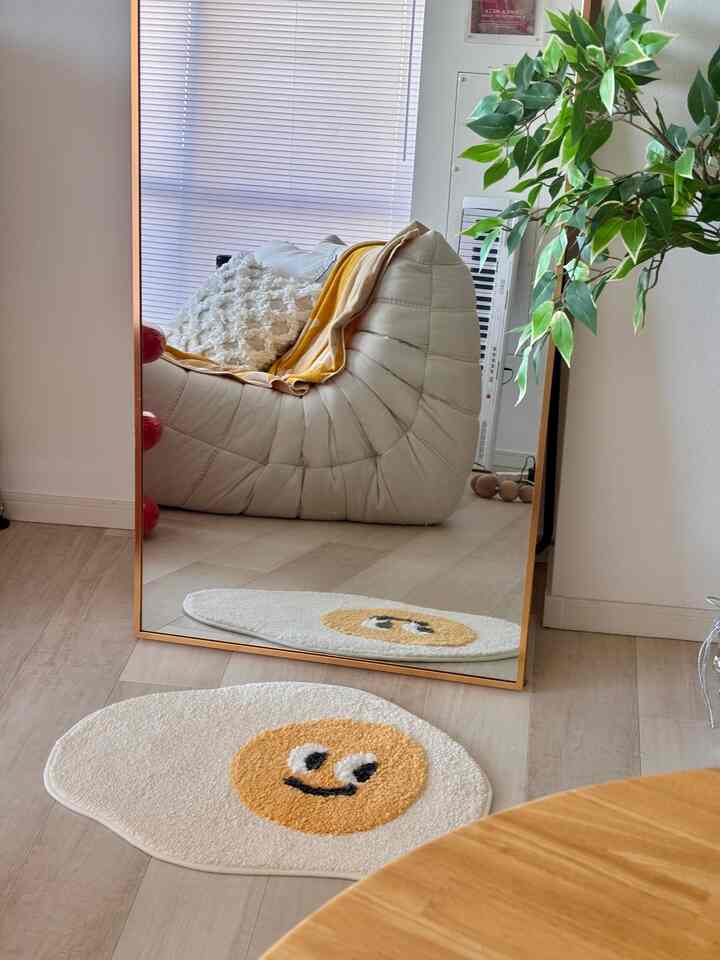 遊び心をお部屋に足したくてOhouseで購入。 目玉焼きの顔がなんともいえない可愛さ🥚🍳 #Ohouseshopping #2026Ohouse新生活 #ラグ