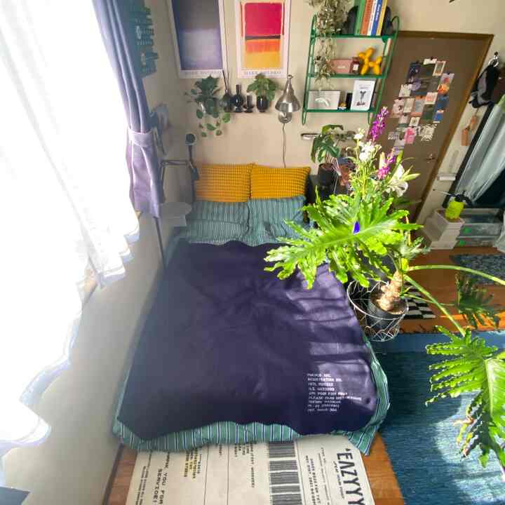 ベッドは実店舗で試してから購入しました。普段から睡眠を大切にしているので、自分の体に合ったものを選べて大満足です。寝具はシアサッカー素材の布団とベッドパッドを使用。暑がりの私にとってはまさに最強アイテムで、朝までさらりと快適に眠れます。汗をかきやすい方や体温が高めの方には特におすすめしたいアイテムです👍