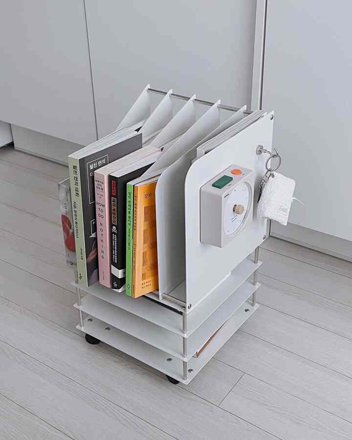 2つ目のおすすめは、私の小さなブックステーション、VIKAAのブックワゴン。コンパクトだから、普段は机の下にすっと収めておいて、読むときだけ出すのがちょうどいいんです。