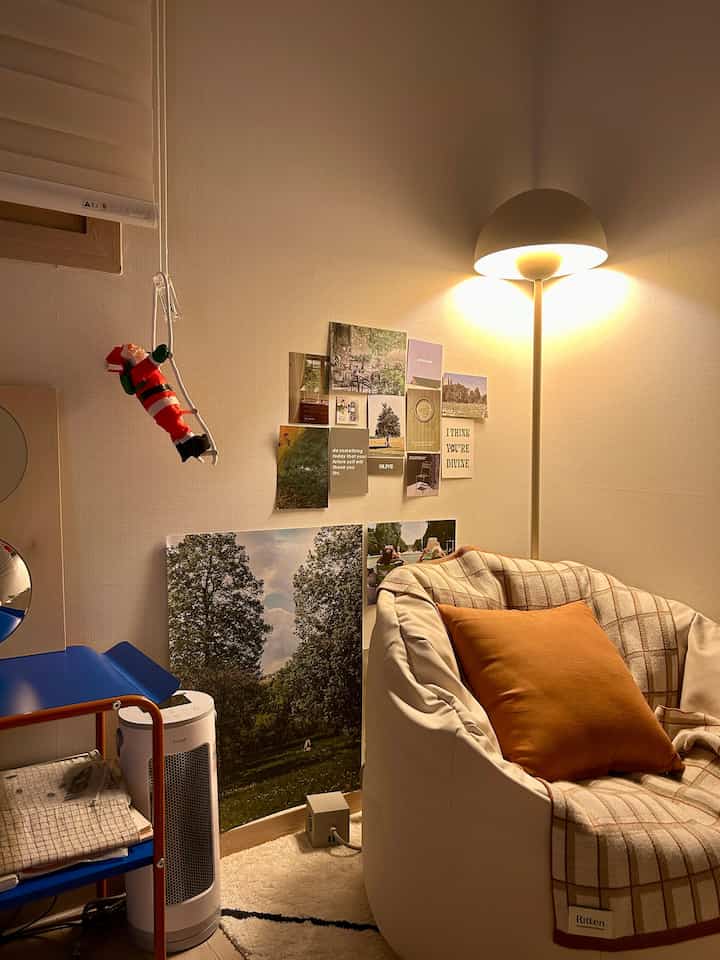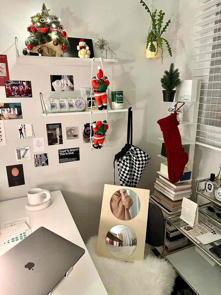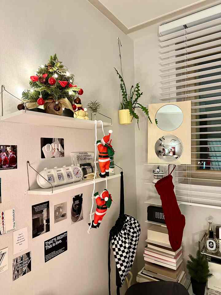 大きな部屋にある私だけの空間にぶら下がったサンタなのに、