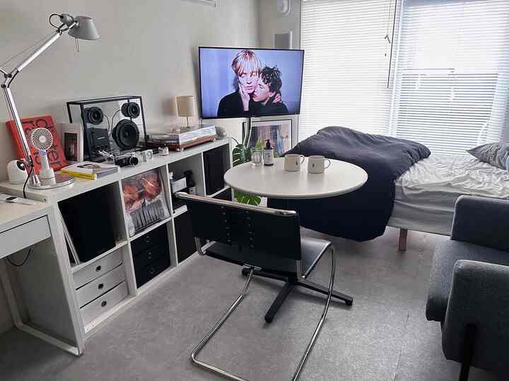 🇯🇵 無機質でモダンポップな部屋:音楽好きの1K一人暮らし