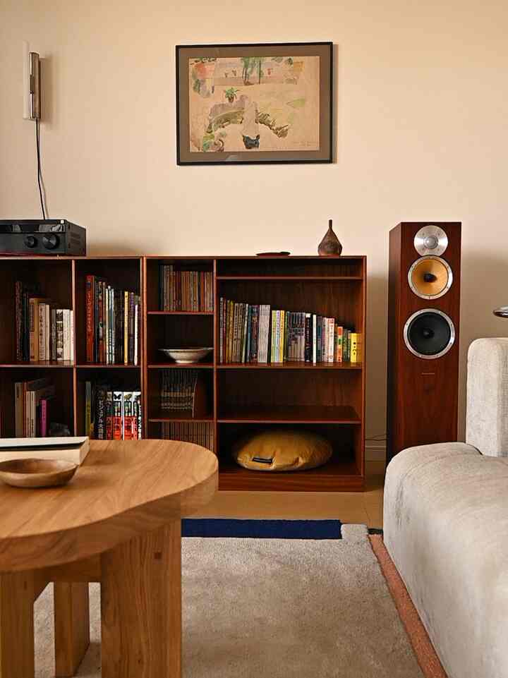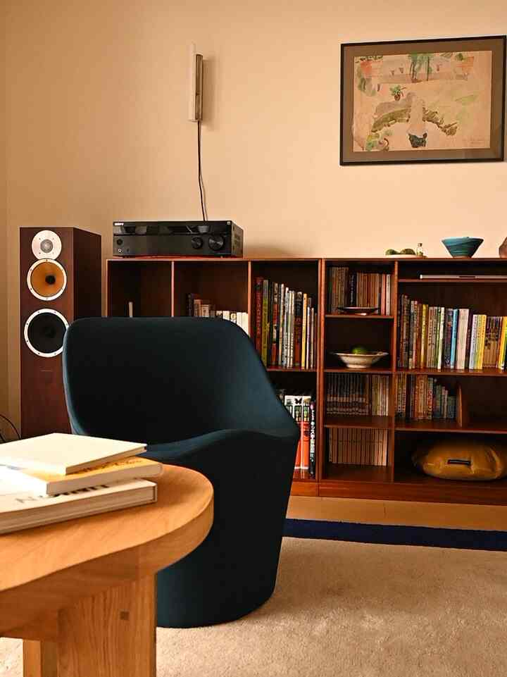 #リビング #ラウンジチェア #本棚インテリア #サイドテーブル #ブランケット #スピーカー