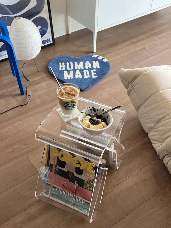 洗面ボウルは、スッキリとした見た目ながら存在感もある四角いボウルを採用しました。鏡、背面のタイル、造作の引き出しの形が全て大きさの異なる四角形になっていて、統一感が出たように見えます🟫🟧🟨