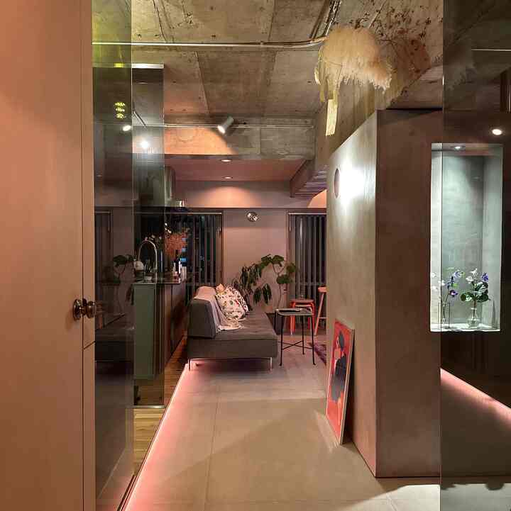 花を飾るって、それだけでちょっといい気分になる。 設計段階から花を飾るところが欲しいと、モルタルニッチをつくりました。 無機質なモルタルと生花のコントラストがとても好きな空間です。 #flower #concrete #living #interior #lighting