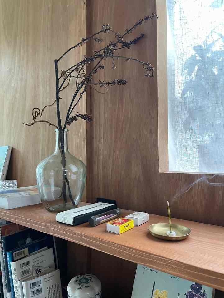 香りものコーナー お香やキャンドル、好きな香りのものを置いています🕯️ 特に、マリアージュフレールのお香が最近のお気に入りです🫖 #お香 #キャンドル #お香立て #フォグリネンワーク #マリアージュフレール #棚 #本棚