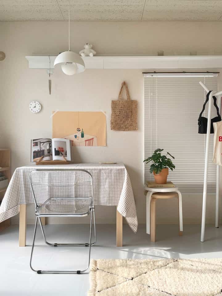 フォグリネンワークのテーブルクロスを購入しました!理想としていたカラーとチェック柄で、即決でした☺️ #テーブルクロス #フォグリネンワーク #ワークスペース #ワークスペースインテリア
