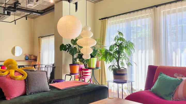 ちょっとずつ観葉植物増えてます🪴 #リビング #リビング植物 #リビングインテリア #ソファ #観葉植物 #モンステラ #カラフル #カラフルインテリア #カラフルなインテリア #ミッドセンチュリー #リノベーション #リノベ