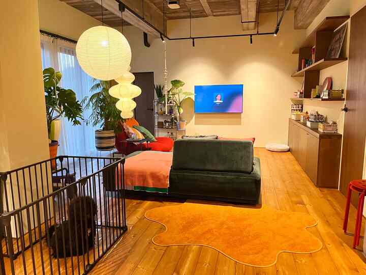午後のリビング🛋️ ラグのサイズ感も良い感じです🙆♀️ この上で子供がレゴしたりして遊んでます👦🏻 #Ohouseshopping #ラグ #ROEL #リビング #カラフル #リノベーション