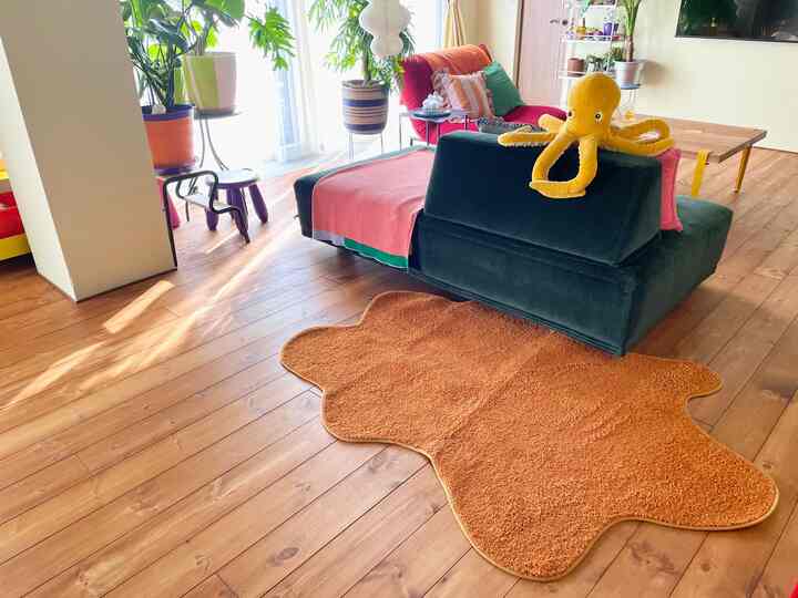 Ohouseでラグを購入しました✨ ずっと気になってた「溢しちゃった」みたいなラグ🫗 この曲線具合が最高です🥰 #Ohouseshopping #ラグ #ROEL #リビング #カラフル #リノベーション