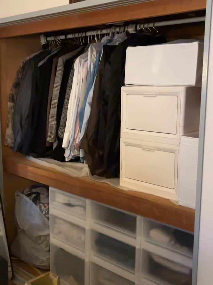 ついにリビングの洋服収納として活用していた押入れを整理! 取手がついたボックスが欲しいと思っていたところ、ちょうどいいのがありohouseで購入。 olivingのホワイト40cmを二つ。 モジュール式となっていて結構便利でした✨ #Ohouseshopping #2026Ohouse新生活 #収納家具